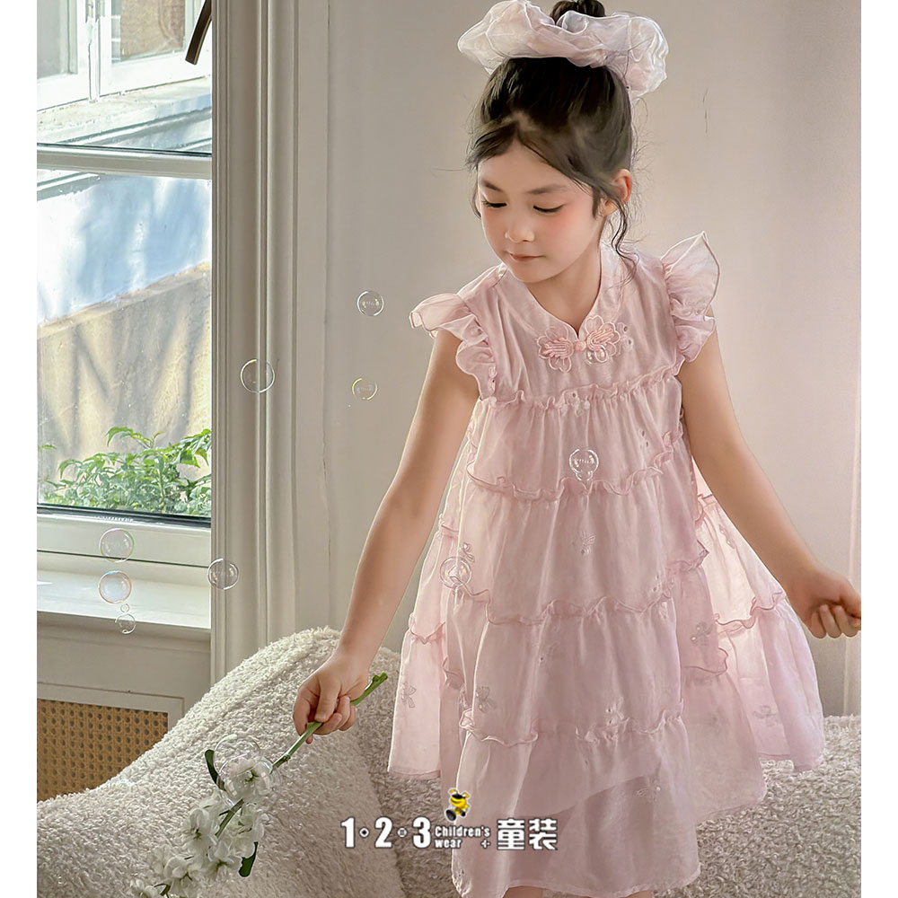 《复古》粉 夏款 女中童XKH26031 HLDD时尚短袖连衣裙1+2=3童装连锁