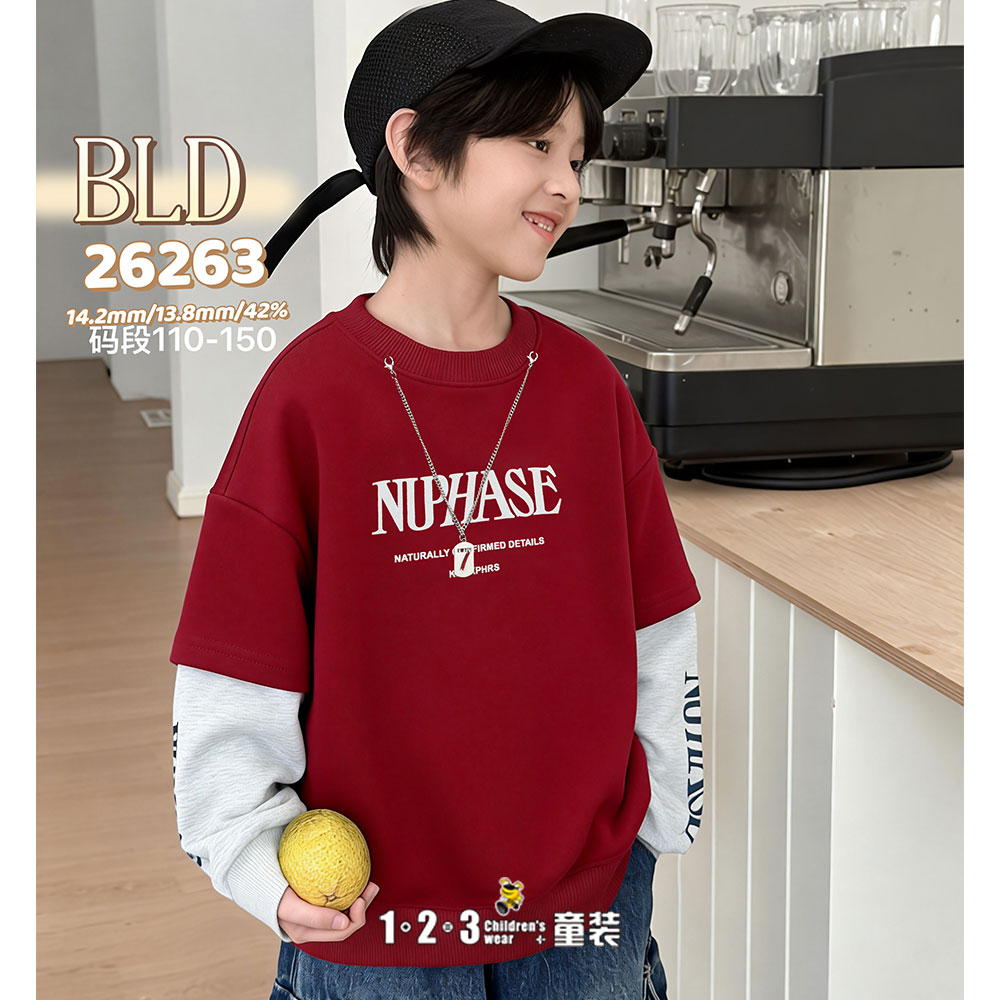 ★【特价】红 春款 男中童26263 BLDD时尚薄套头衫1+2=3童装连锁