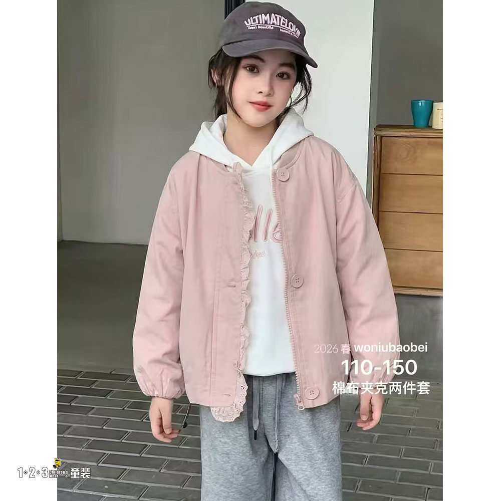 (两件套)★粉 春款 女中童2603 WNDD时尚长袖套装1+2=3童装连锁