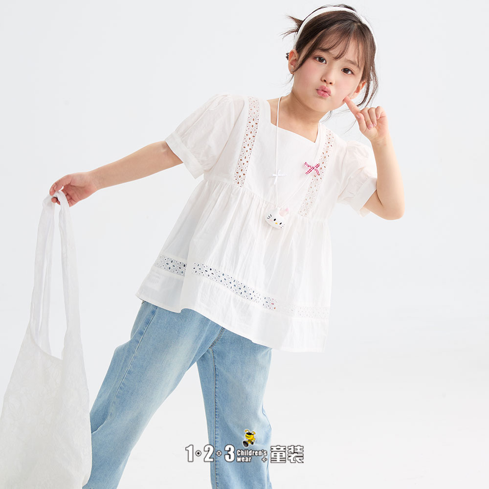 白 夏款 女小童6F20316 DDDD时尚短袖衬衫1+2=3童装连锁