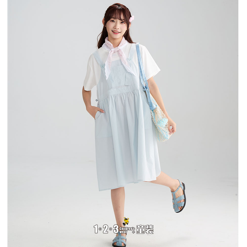 浅蓝 夏款 女大童6F20315 PCDD时尚短袖连衣裙1+2=3童装连锁