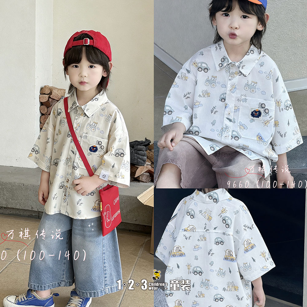 ★白 夏款 男中童9660 WQDD时尚短袖衬衫1+2=3童装连锁