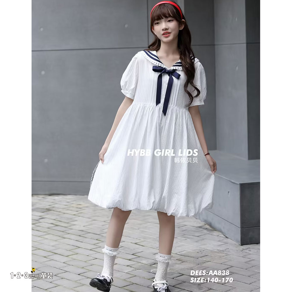 ★白 夏款 女大童838 HYDD时尚短袖连衣裙1+2=3童装连锁