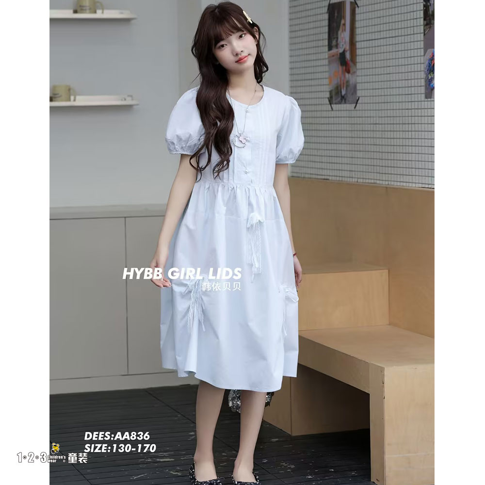 ★蓝 夏款 女大童836 HYDD时尚短袖连衣裙1+2=3童装连锁
