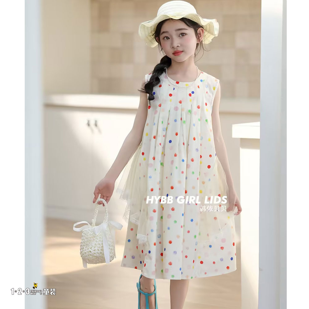 ★米白 夏款 女中童827 HYDD时尚短袖连衣裙1+2=3童装连锁