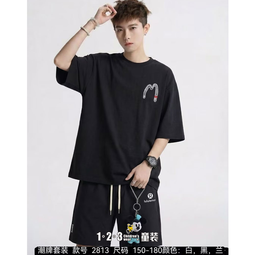 ★黑 夏款 男大童2813 DKDD时尚短袖套装1+2=3童装连锁