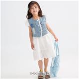 (多多同款)牛仔蓝 夏款 女大童6F20834 DDDD时尚短袖连衣裙1+2=3童装连锁