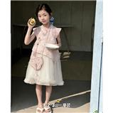 《复古》粉 夏款 女中童XKR26102 RYDD时尚短袖连衣裙1+2=3童装连锁