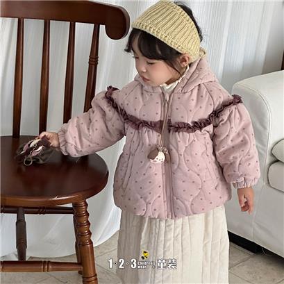 >>粉 冬款 女小童DK7222 KLDD时尚薄棉衣1+2=3童装连锁