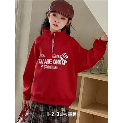 >>(圣诞款/奥粒一体绒)【特价】红 冬款 女中童NH89226 QYDD时尚厚套头衫1+2=3童装连锁