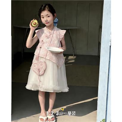 >>《复古》粉 夏款 女中童XKR26102 RYDD时尚短袖连衣裙1+2=3童装连锁