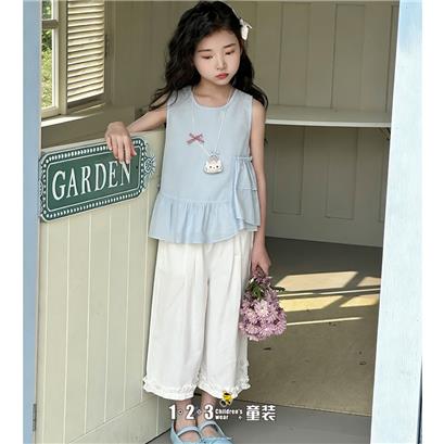 《休闲》【特价】蓝 夏款 女小童XKR2618 RYDD时尚背心套装1+2=3童装连锁
