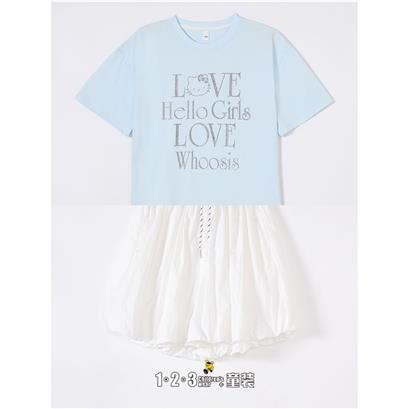 >>浅蓝 夏款 女大童6F20842 DDDD时尚短袖套装1+2=3童装连锁