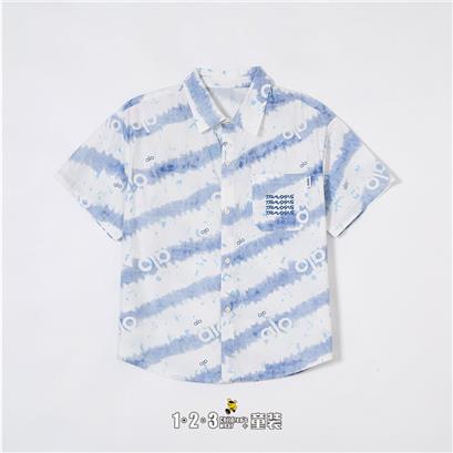 蓝 夏款 男大童6M20327 DDDD时尚短袖衬衫1+2=3童装连锁