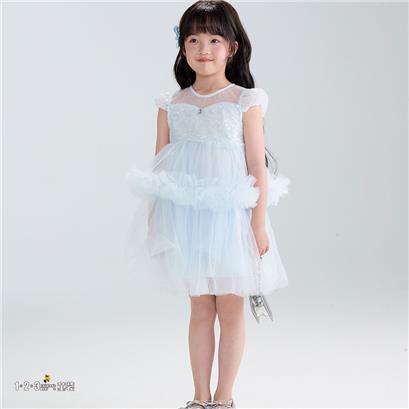 >>(多多同款)蓝 夏款 女小童6F20802 DDDD时尚短袖连衣裙1+2=3童装连锁