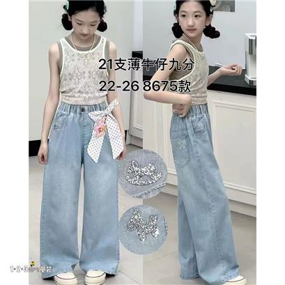 ★【特价】浅蓝 夏款 22-26女中童8675 SSDD时尚牛仔中裤1+2=3童装连锁