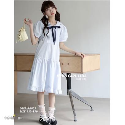 >>★蓝 夏款 女大童837 HYDD时尚短袖连衣裙1+2=3童装连锁