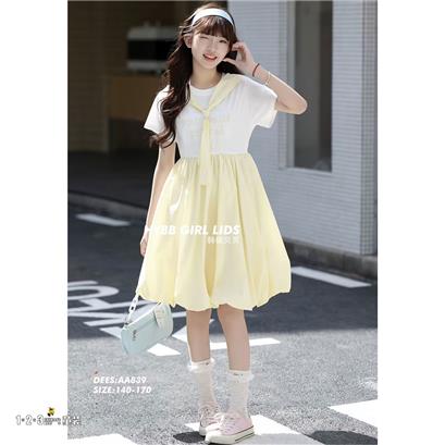 ★黄 夏款 女大童839 HYDD时尚短袖连衣裙1+2=3童装连锁