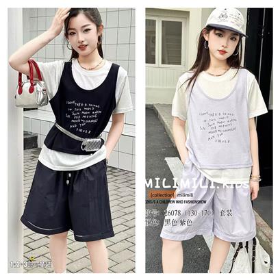 ★紫 夏款 女大童26078 MLDD时尚短袖套装1+2=3童装连锁