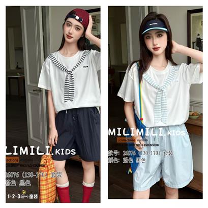 >>★蓝 夏款 女大童76 MLDD时尚短袖套装1+2=3童装连锁