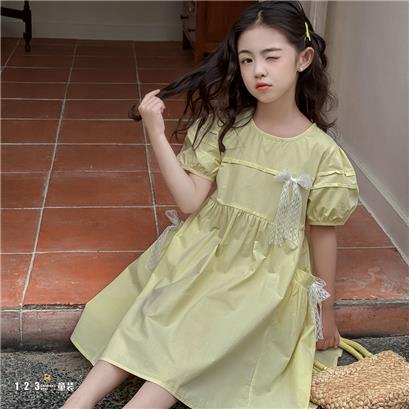★黄 夏款 女中童Q2646 JJDD时尚短袖连衣裙1+2=3童装连锁