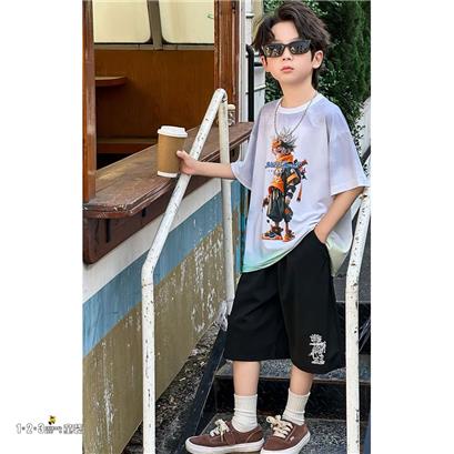 >>★灰 夏款 男中童18123 XLDD时尚短袖套装1+2=3童装连锁