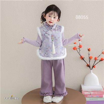 >>【双十一活动78.9元】★紫 冬款 女小童88055 LJDD时尚长袖厚套装1+2=3童装连锁