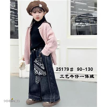 【双十一活动43.9元】★【特价】蓝 冬款 90-130女小童25179 HYDD时尚牛仔夹裤1+2=3童装连锁