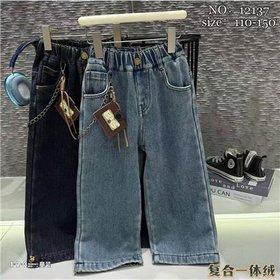 【双十一活动53.9元】★【特价】黑 冬款 110-150男中童12137 BBDD时尚牛仔夹裤1+2=3童装连锁