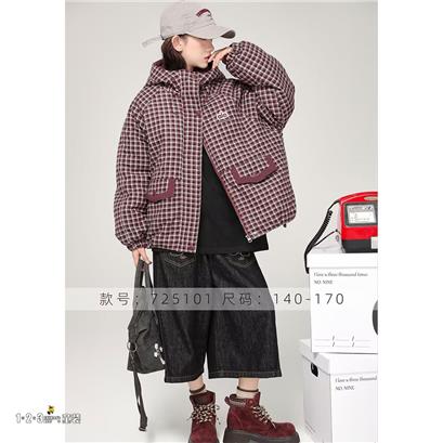 >>【双十一活动90.9元】★红 冬款 女大童725101 YRDD时尚薄棉衣1+2=3童装连锁