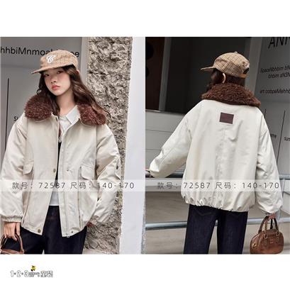 【双十一活动93.9元】★米白 冬款 女大童72587 YRDD时尚薄棉衣1+2=3童装连锁