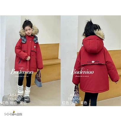 【福利专享99.9元】★红 冬款 女中童848 BDDD时尚薄棉衣1+2=3童装连锁